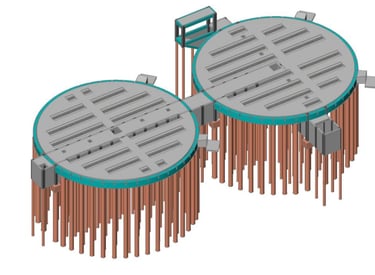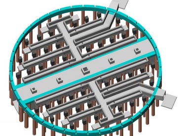 Nosso projeto começa onde outros param: realizamos análise avançada da interação solo-estrutura, considerando recalques diferenciais que podem comprometer a estanqueidade e a estabilidade da estrutura. Aplicamos a NBR 6122:2022 e NBR 6118:2023 como base para modelos computacionais com não linearidade física e geométrica, simulações de esvaziamento parcial e verificação rigorosa de estados-limite de serviço — incluindo fissuração, deformações e durabilidade em ambientes agressivos.